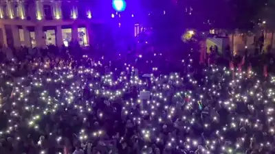 Как сообщают журналисты с места событий, тысячи людей собрались в четверг на площади Республики в центре Парижа. Демонстранты принесли с собой флаги Палестины и в какой-то момент коллективно включили фонарики.