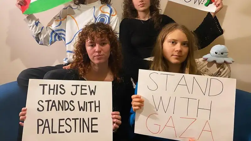 "Сегодня мы бастуем в знак солидарности с Палестиной и Газой. Мир должен высказаться и призвать к немедленному прекращению огня, справедливости и свободе для палестинцев и всех пострадавших гражданских лиц".Грета Тунберг