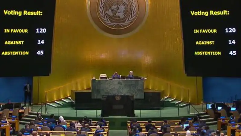 За принятие резолюции проголосовали 120 стран, воздержались 45. Против примирения выступили 14 участниц голосования, в том числе Израиль и США.