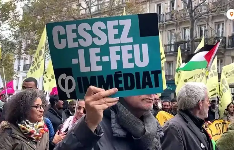 В Париже прошел первый разрешенный с 7 октября митинг в поддержку Палестины. Люди вышли с плакатами, где сказано, что "Ничего не делать, ничего не говорить – значит быть соучастником", а также надписи призывали "Остановить цикл насилия".