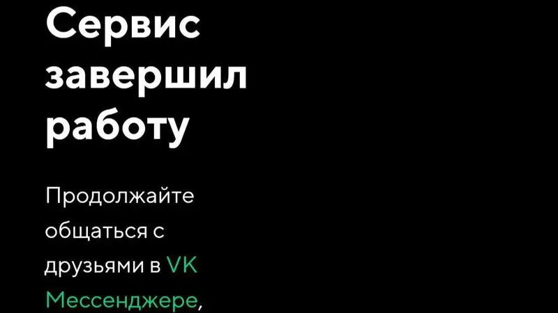 "Сервис завершил работу. Продолжайте общаться с друзьями в "VK Мессенджере" и VK Workspace", – говорится в сообщении компании.
