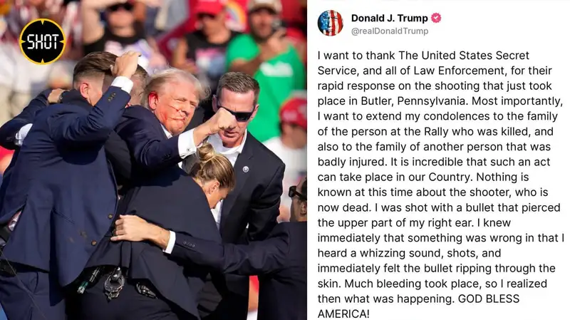 "Хочу поблагодарить Секретную службу США и все правоохранительные органы за их оперативный ответ на стрельбу, которая только что произошла в Батлере, штат Пенсильвания.