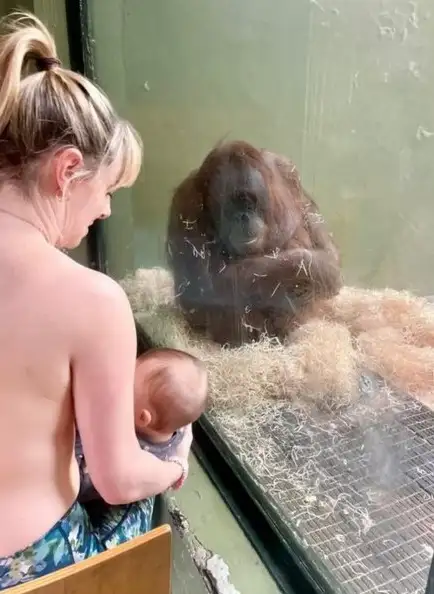 В Дублине женщины согласились учить самку орангутана грудному вскармливанию