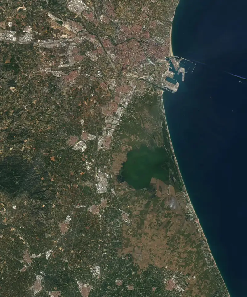 NASA Earth Observatory сделала снимок со своего спутника Landsat 8 на следующий день после исторического ливня. На нем были запечатлены части восточной провинции Валенсия, затопленные паводковыми водами.