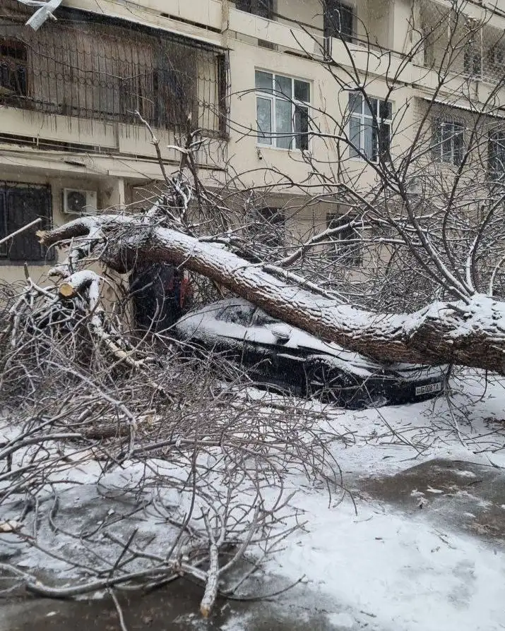 На машину за 50 тысяч долларов рухнуло дерево в Узбекистане