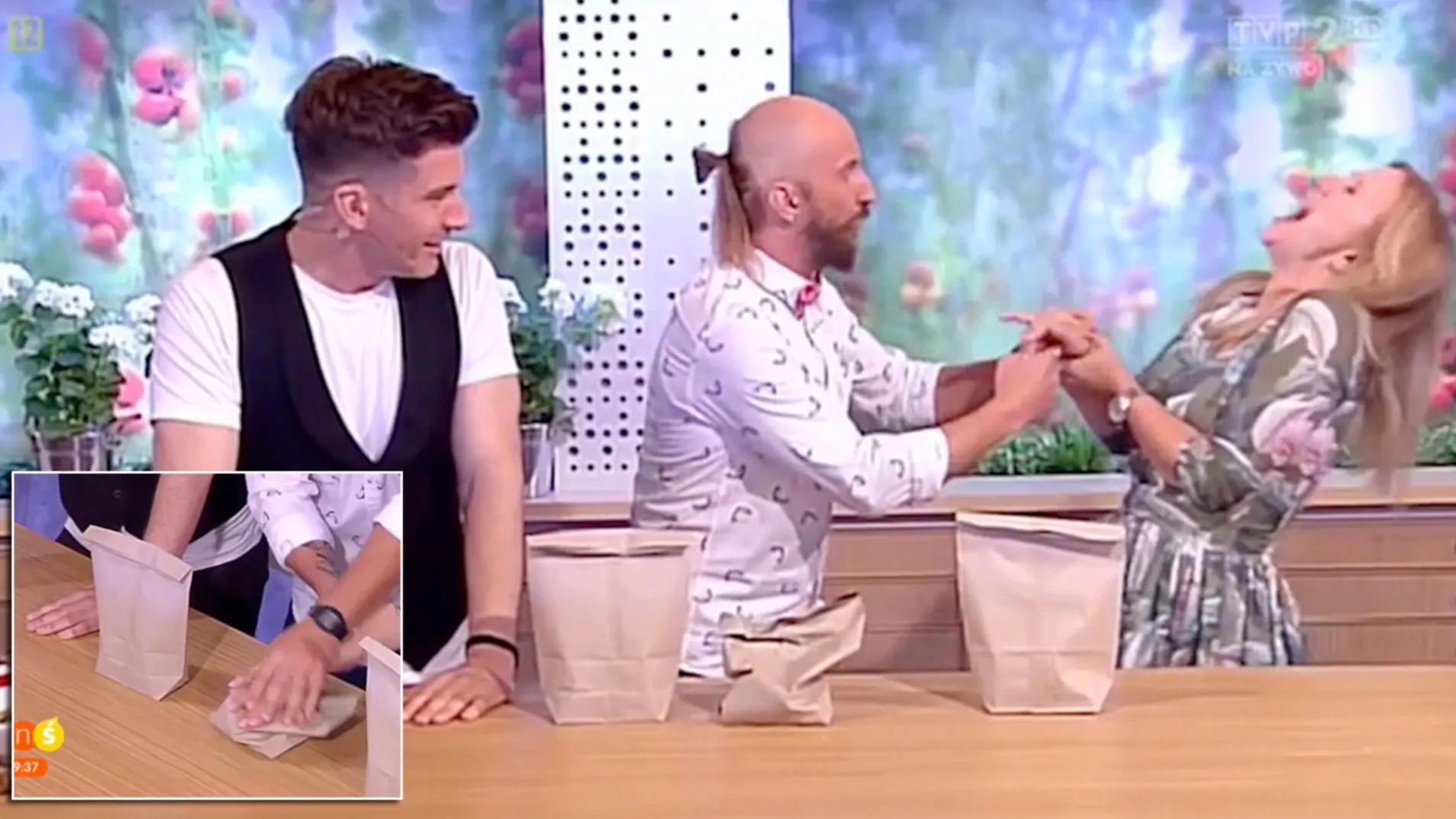 Как уточняется, фокусник использовал четыре бумажных пакета, в одном из которых был спрятан острый предмет. Уверенный в своем мастерстве, Марчин ударил рукой Мажены по одному из мешков, но допустил роковую ошибку. Удар пришелся именно на тот пакет, где находился гвоздь. Телеведущая громко закричала от боли, когда острый предмет пронзил ее руку.
