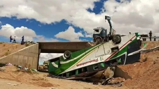 en la carretera #Uyuni – #Villazón, altura de la localidad de #Cerdas, donde una flota de la empresa Panamericana dio vuelco de tonel, dejó como saldo 19 personas fallecidas y nueve heridas las cuales fueron trasladadas al hospital de Uyuni pic.twitter.com/xCrseeicer