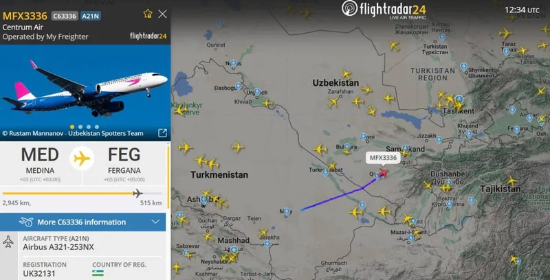 На рейсе Centrum Air номер C6 3336 типа A321neo, летевшеи из Медины в Фергану, была обнаружена утечка масла в двигателе во время пролета над воздушным пространством Туркменистана, передает пресс-служба авиакомпании в своем Telegram-канале. После получения уведомления от командира воздушного судна было принято решение направить резервный самолет типа A321neo в аэропорт Мары.