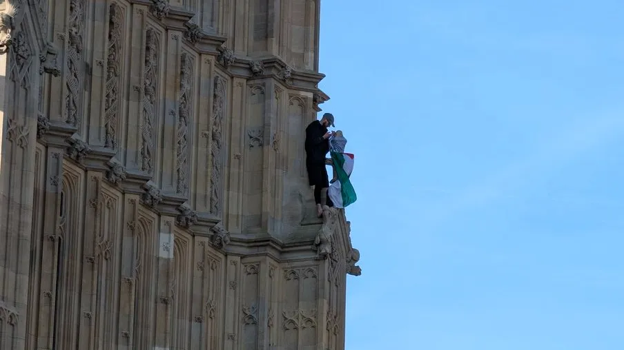 Мужчина залез на башню Биг-Бена в Лондоне с флагом Палестины