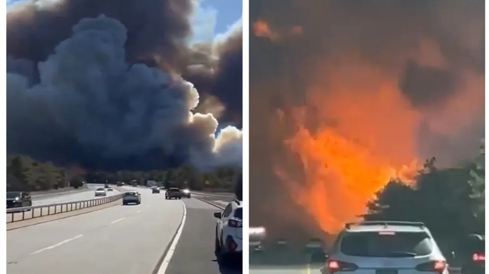 "Низовые пожары перекрывают дороги на Лонг-Айленде в Нью-Йорке.В Саутгемптоне, расположенном в округе Саффолк, бушует огонь, объявлена чрезвычайная ситуация", – говорится в сообщении.