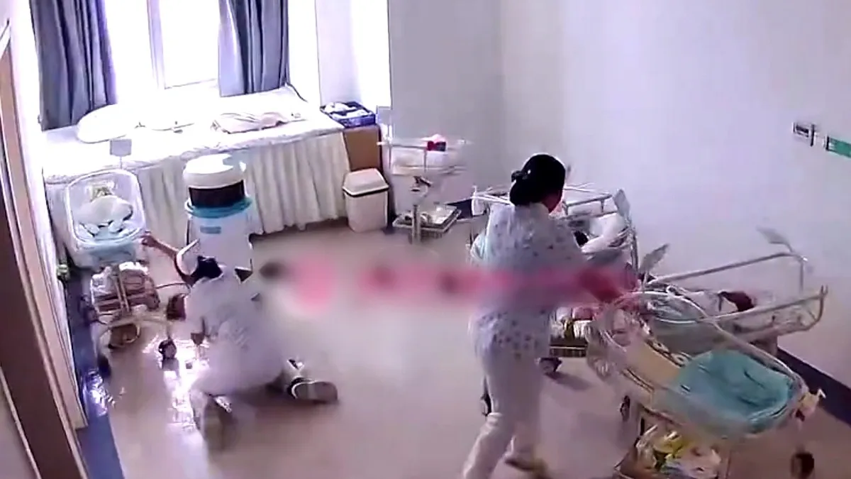 В ролике медсестры местного роддома во время землетрясения отчаянно пытались удержать кувезы с новорожденными.