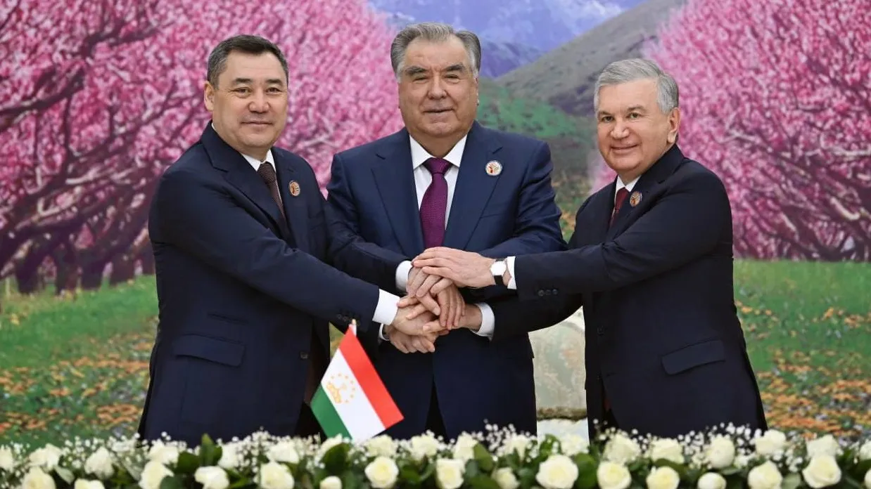 После официальной части состоялось шоу дронов. Тогда в небе появились портреты президента Таджикистана Эмомали Рахмона, президента Узбекистана Шавката Мирзиёева и президента Кыргызстана Садыра Жапарова. Кроме того, дроны изобразили карты трех стран и выстроились в форме птиц в цвета их государственных флагов.