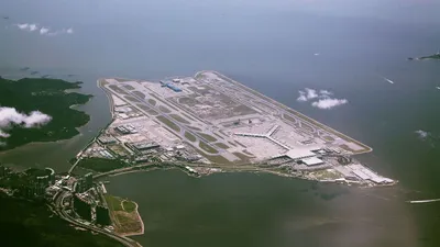 Аэропорт Гонконга построили на насыпанном искусственном острове. Строительство продолжалось шесть лет и обошлось в 20 млрд долларов.