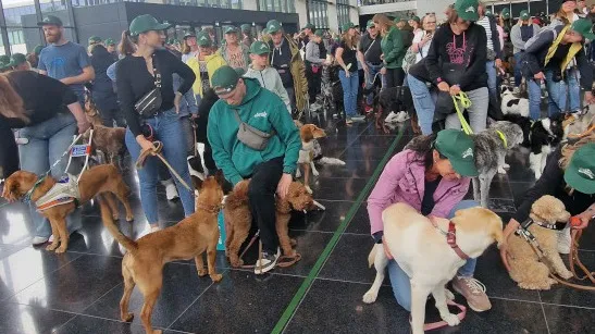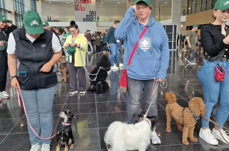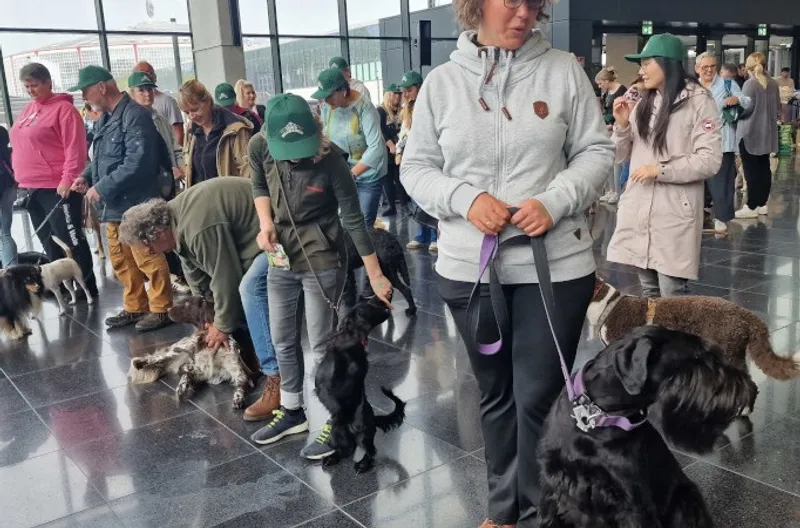 По данным организаторов, собак пригласили в огромную комнату, где их подкупали лакомствами и поглаживали, пока они исследовали новые захватывающие запахи. После того как общее количество участников и щенков было подсчитано, все выстроились в ряд, а их владельцы терпеливо ждали вместе со своими питомцами.