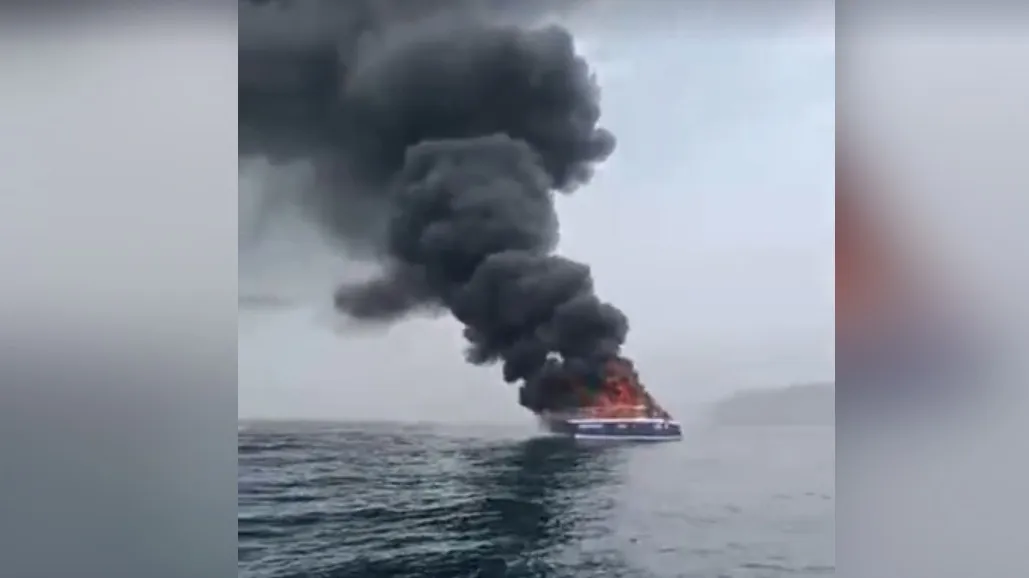 В Японском море загорелся катамаран с туристами: очевидцы показали жуткие кадры