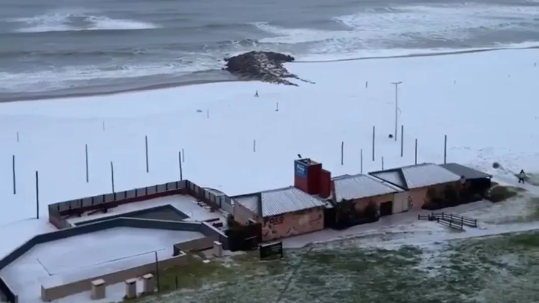 Snow on the beach ❄️🏖️ A cold snap has set all-time winter lows in Chile and Argentina. Local news reports that snow has not fallen in the coastal town of Miramar, Argentina, since 1991. pic.twitter.com/Axj0XEWqGW