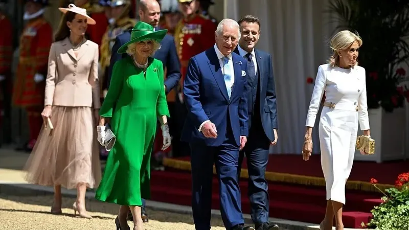 Ролик с этим моментом теперь активно распространяется в социальных сетях. Как видно на кадрах, пара идет рядом с Виндзорским замком вместе с Кейт Миддлтон, принцем Уильямом, королем Чарльзом III и королевой Камиллой. При этом Брижит ускоряет шаг, идя впереди. Макрон попытался схватить ее за руку, но не дотянулся, так как первая леди убрала ее.
