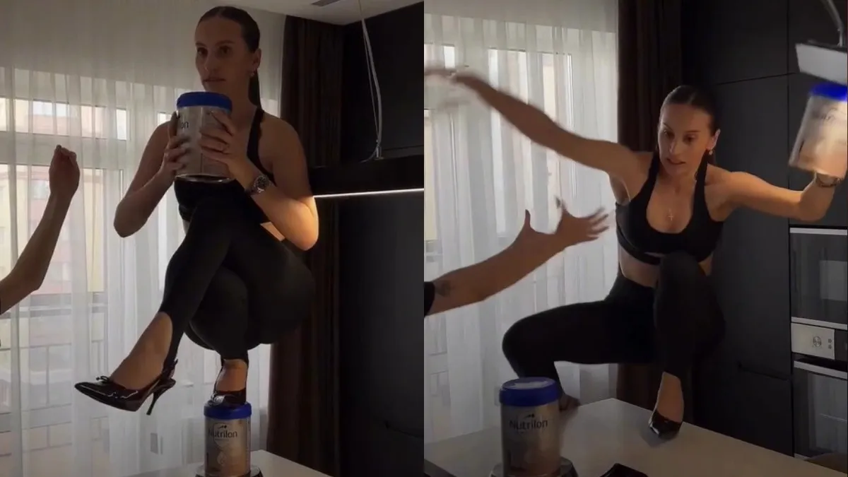 Россиянка решила присоединиться к челленджу. Женщина позвала в гости подругу-фотографа, надела шпильки и встала одной ногой на кастрюлю, на которой была банка детской смеси, однако не удержалась и упала.