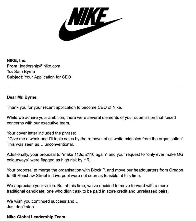Продавец кроссовок из Ливерпуля захотел руководить Nike и получил приглашение на стажировку