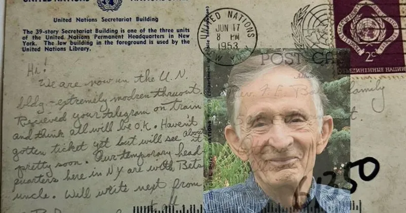 Возможно, из-за изображения ООН на обратной стороне открытку по ошибке отправили в здание организации. Как оказалось, затем она затерялась на десятилетия.