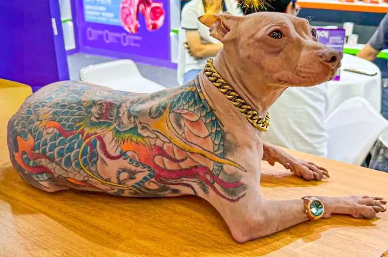 Собака с татуировками на всю спину шокировала участников выставки в Китае