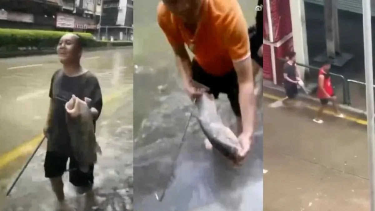 В Макао, где сильный шторм вызвал масштабные наводнения, местные жители были замечены за ловлей рыбы, которую вода принесла прямо на проезжую часть. В социальных сетях появились видеоролики, на которых люди бредут по колено в воде с сетями и пластиковыми пакетами, собирая улов.