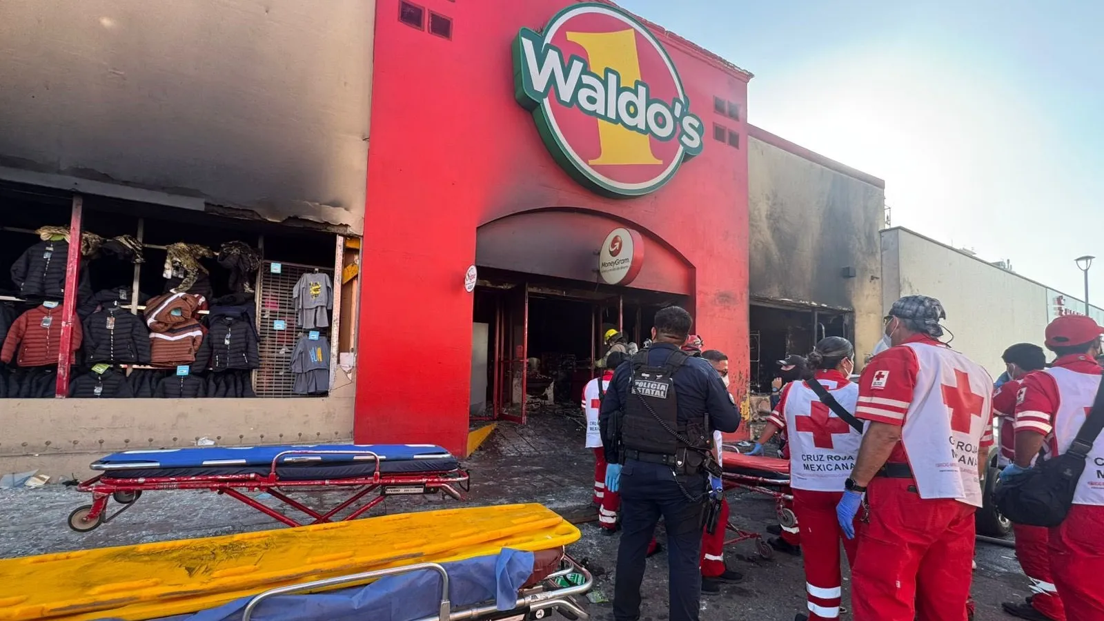 Así queda, una vez sofocado totalmente el incendio que se registró al filo de las 3pm, la fachada de la tienda Waldos en el centro comercial de Hermosillo. pic.twitter.com/giiwkgCt1N