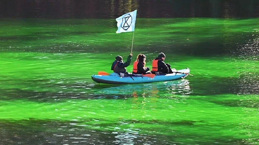'Extinction Rebellion' activists pour dye into Venice’s Grand Canal, turning the water bright GREEN