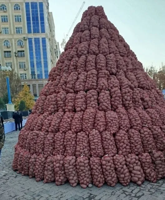 Местные умельцы даже соорудили пирамиду из картофеля.