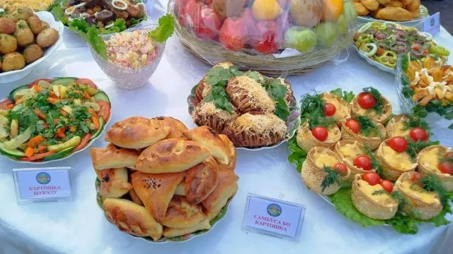 На выставке таджикские аграрии представили самые лучшие сорта этой популярной сельхозкультуры. Посетителей ждала целая гора из мешков с картофелем и дастархан с блюдами из него.