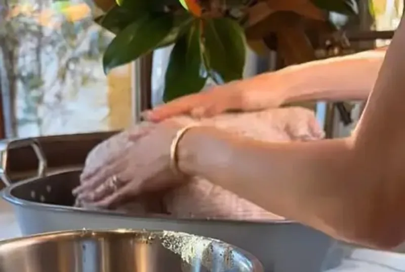 На видео, размещенном на аккаунте ее фирменной продукции в Instagram, Меган смешивала приправы и натирала ими сырую птицу, не снимая массивный золотой браслет и кольцо. Однако пользователи обратили внимание на вопиющее нарушение санитарных норм.