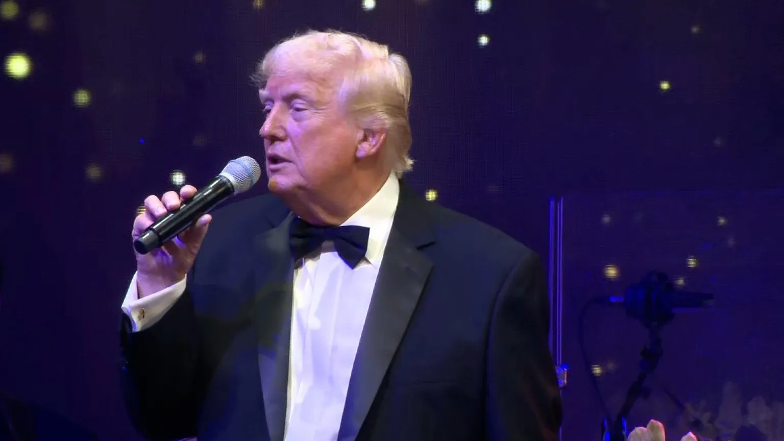 SOLD: President Trump leads a charity auction during the Mar-a-Lago New Year's Eve party.