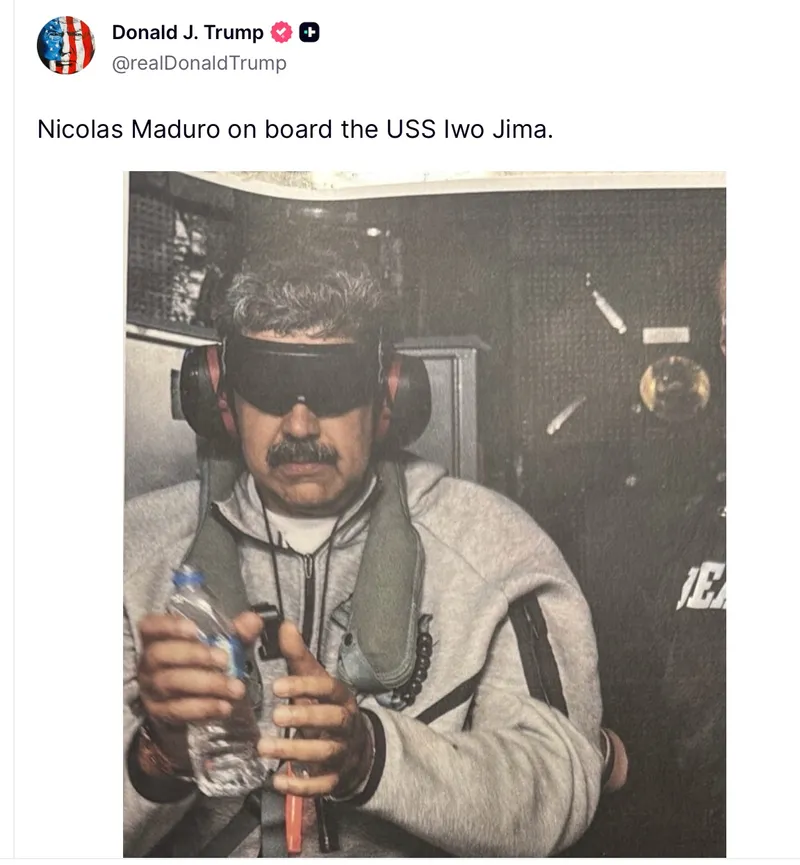 Позже Дональд Трамп опубликовал фото захваченного Николаса Мадуро.