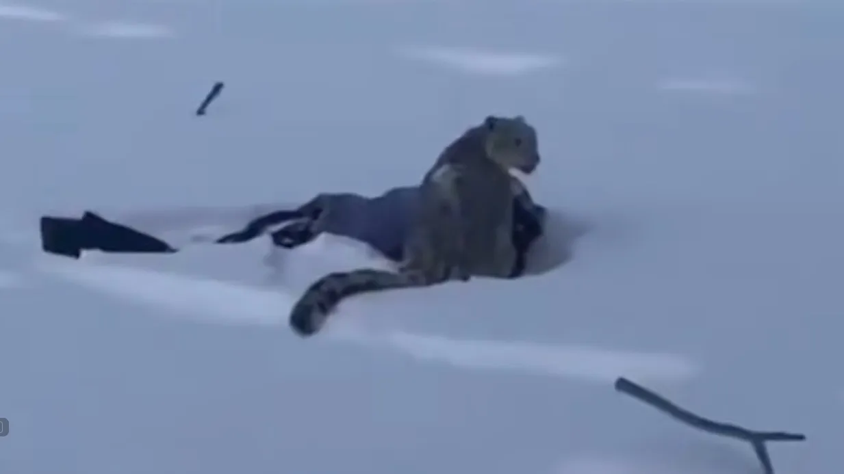 Снежный барс напал на лыжницу в горах недалеко от границы с Казахстаном