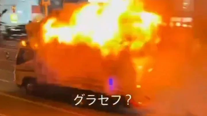 Residents in Kumamoto were stunned Thursday night when they saw the mobile food truck engulfed in flames speeding through the streets