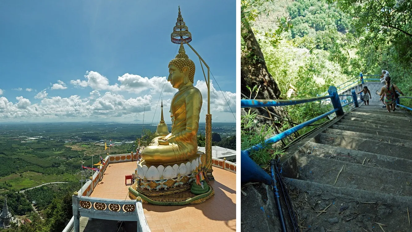 Храм Тигровой Пещеры, также известный как Ват Тхам Суа, является одной из самых известных религиозных достопримечательностей Таиланда. Он славится сложным подъемом из 1260 ступеней к святыне на вершине холма, откуда открываются потрясающие виды на остров. Подъем особенно тяжел во время жаркой погоды.