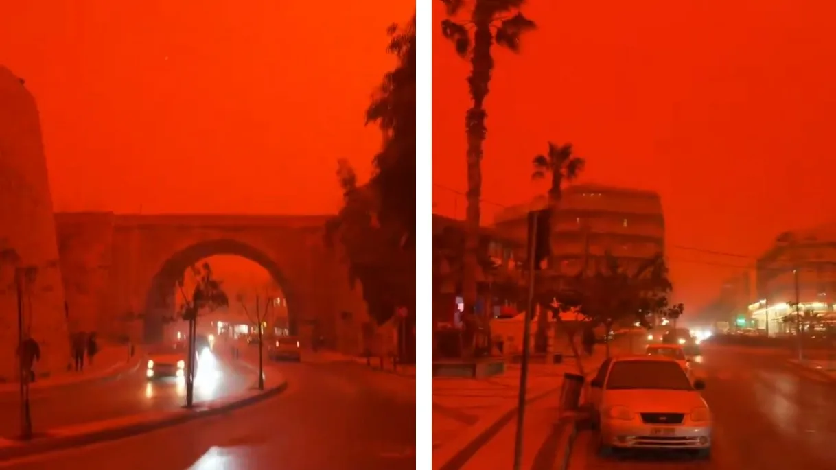 A rare red sandstorm has swept across Crete (Greece) and Libya, turning the skies a dramatic shade of red. It’s expected to move toward Egypt and nearby regions in the coming hours. The footage from Greece and Libya today shows the real scene no filters involved. pic.twitter.com/8M33jVbwJp