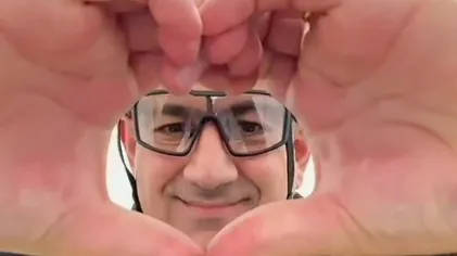 В кадре Никол Пашинян сначала серьезно смотрит в камеру в велосипедном шлеме и очках, а затем под песню Веры Брежневой "Любовь спасет мир" улыбается и складывает руками сердечко.