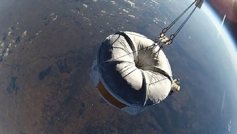 Воздушный шар был разработан для запуска самолетов и наполнен гелием при нулевом давлении. В ходе изменения атмосферного давления оболочка сохранила свою целостность, чтобы подняться на заданную высоту и запустить ракету.