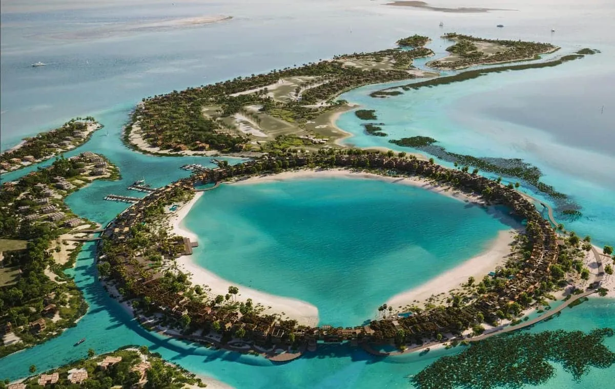 Курорт Laheq площадью 400 гектаров сосредоточится вокруг искусственной круглой конструкции диаметром 800 метров, лежащей на воде. Там построят роскошные апартаменты, отели, торговые площади, развлекательные зоны, поля для гольфа и пристани для яхт.