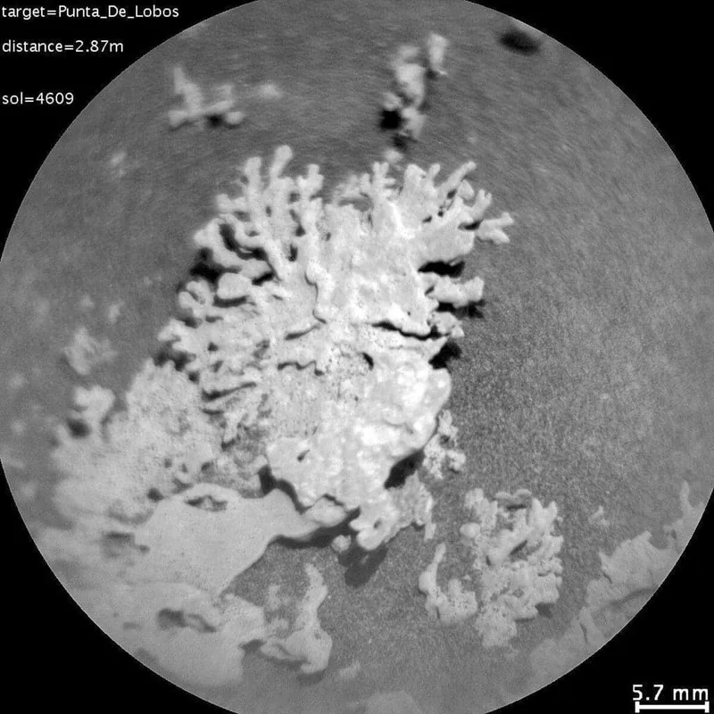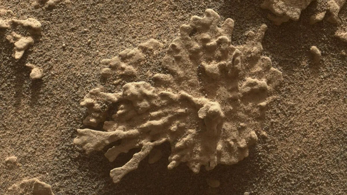 По данным сайта Curiosity, на изображении запечатлена минеральная порода, которая благодаря эрозии со временем приняла удивительную форму, напоминающую коралл. Это не колония микроорганизмов, как в земных океанах, а результат естественных процессов отложения и выветривания.