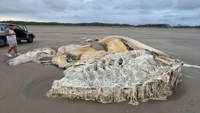 Тело кита оказалось сильно разложившимся – на нем заметны следы поедания другими морскими хищниками, в том числе акулами. Длина его туши составила более 21 метра, а вес – около 50 тонн. Нижняя челюсть животного достигла пяти метров.