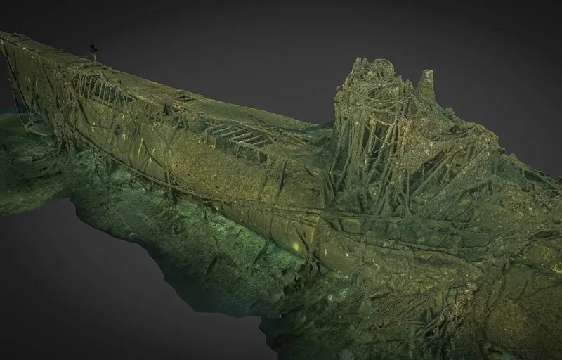 Ученый создал зрелищную 3D-модель затонувшей подлодки Второй мировой войны