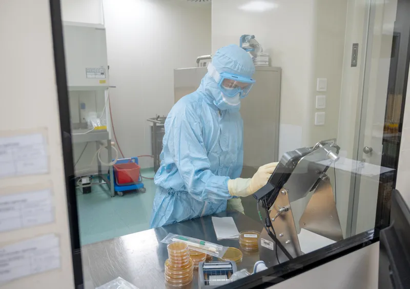 Чтобы убедиться в качестве препаратов, мы прошли на производственную площадку. Экскурсию нам провела сотрудница по имени Елена. Она пояснила, что зона стерильная, поэтому необходимо собрать волосы, снять с себя все украшения. Важно быть в хорошем самочувствии, без макияжа и накрашенных ногтей. Тут же выдают одноразовые шапочки, халаты и бахилы. При входе оставляется телефон, фото- и видеосъемка на площадке строго запрещена. Руки обрабатываются дезинфекцией. Все это в целях безопасности, чтобы ни один микроб не добрался до лекарственных средств.
