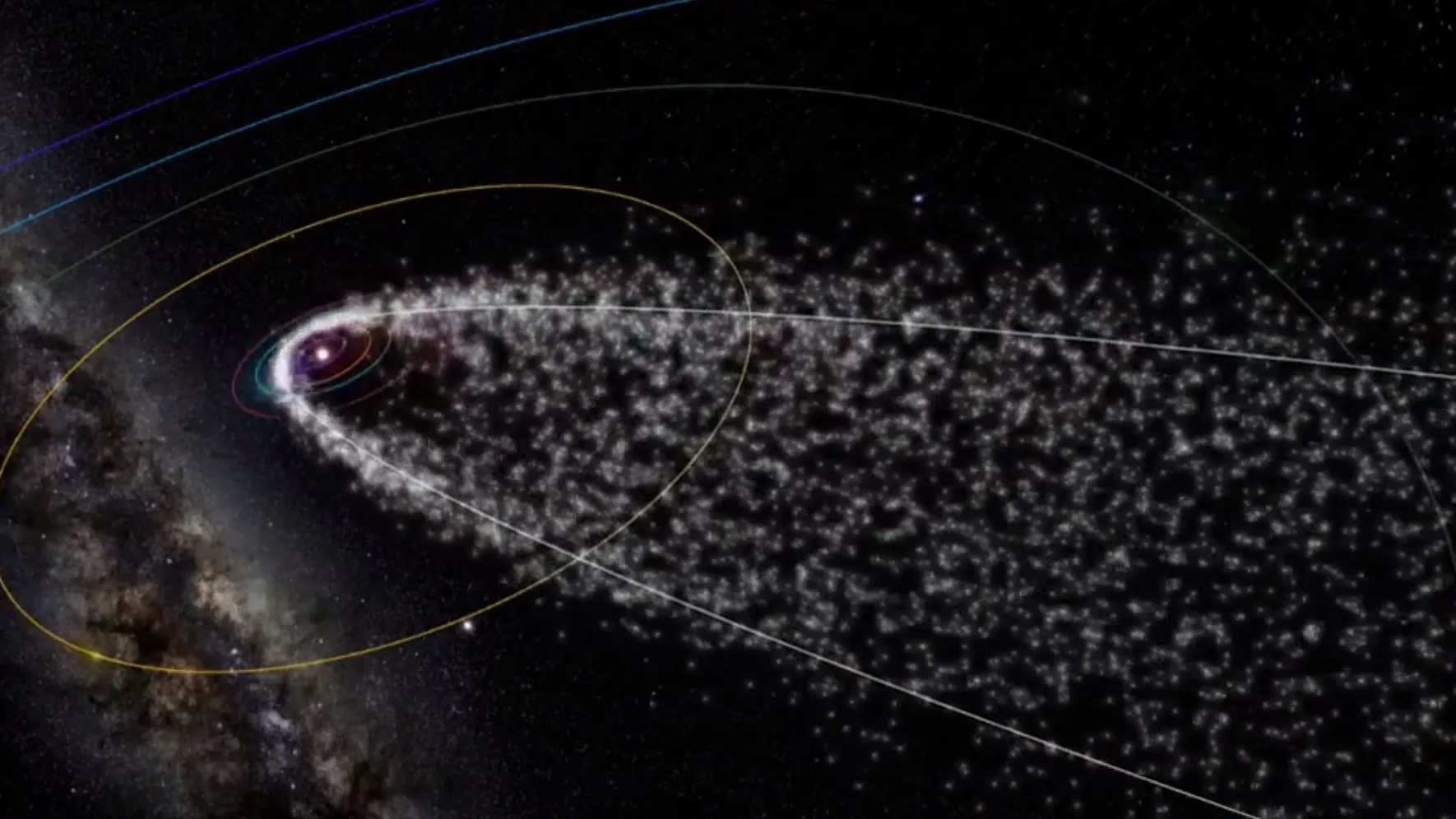Поток примечателен тем, что представляет собой фрагменты вещества кометы Галлея, рассеянные вдоль орбиты кометы (см. приложенное видео).