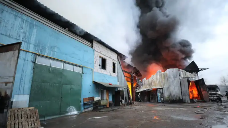 25 ноября в 16:35 пожарные расчеты ДЧС выехали по повышенному рангу на сообщение о горении склада в Жетысуском районе по адресу: мкр. Кокмайса, 26. По прибытии через три минуты (ближайшая ПЧ в мкр. Дорожник) первых пожарных расчетов происходило горение металлического ангара, создалась угроза распространения на соседние складские помещения.Пресс-служба ДЧС Алматы