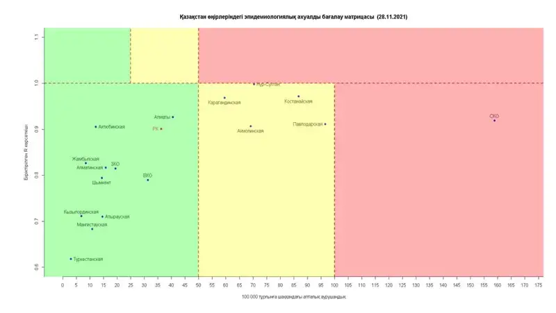 Опубликована матрица оценки эпидситуации в Казахстане на 28 ноября