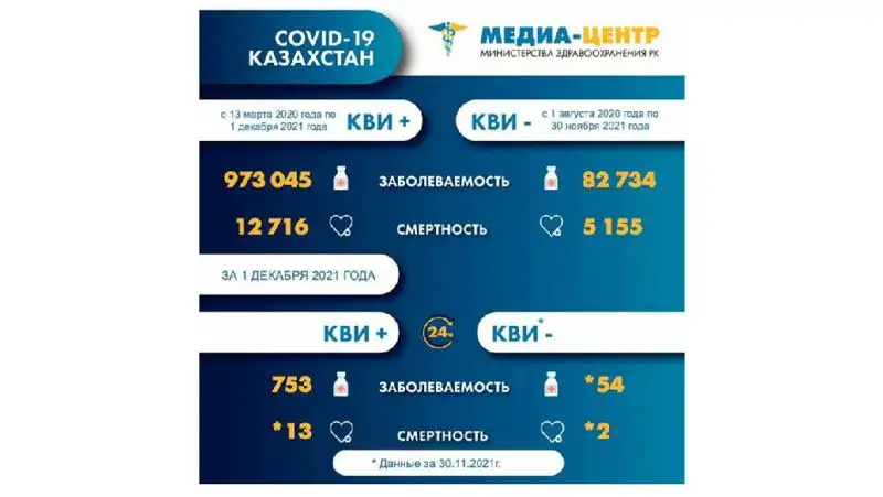 Опубликована информация о заболеваемости коронавирусной инфекцией в РК на 2 декабря, сообщает Zakon.kz.