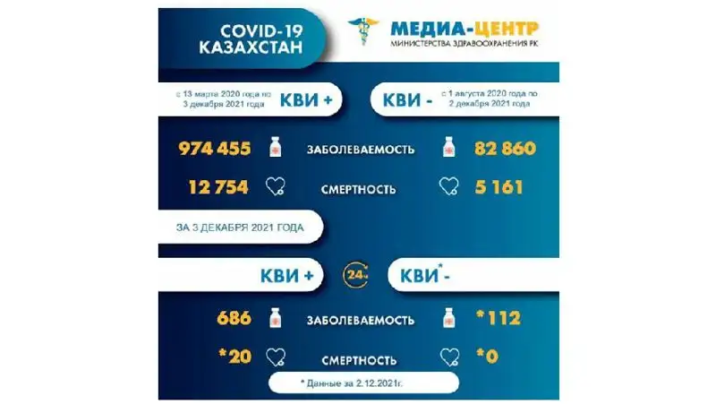 Опубликована информация о заболеваемости коронавирусной инфекцией в РК на 4 декабря, сообщает Zakon.kz.