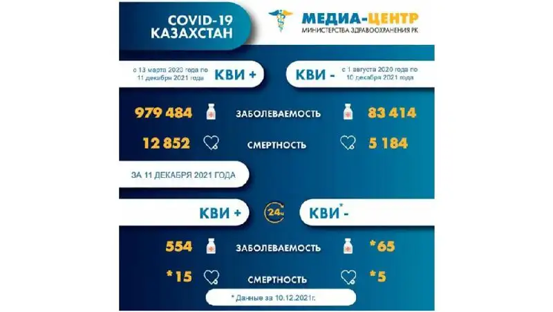 Опубликована информация о заболеваемости коронавирусной инфекцией в РК на 12 декабря, сообщает Zakon.kz.